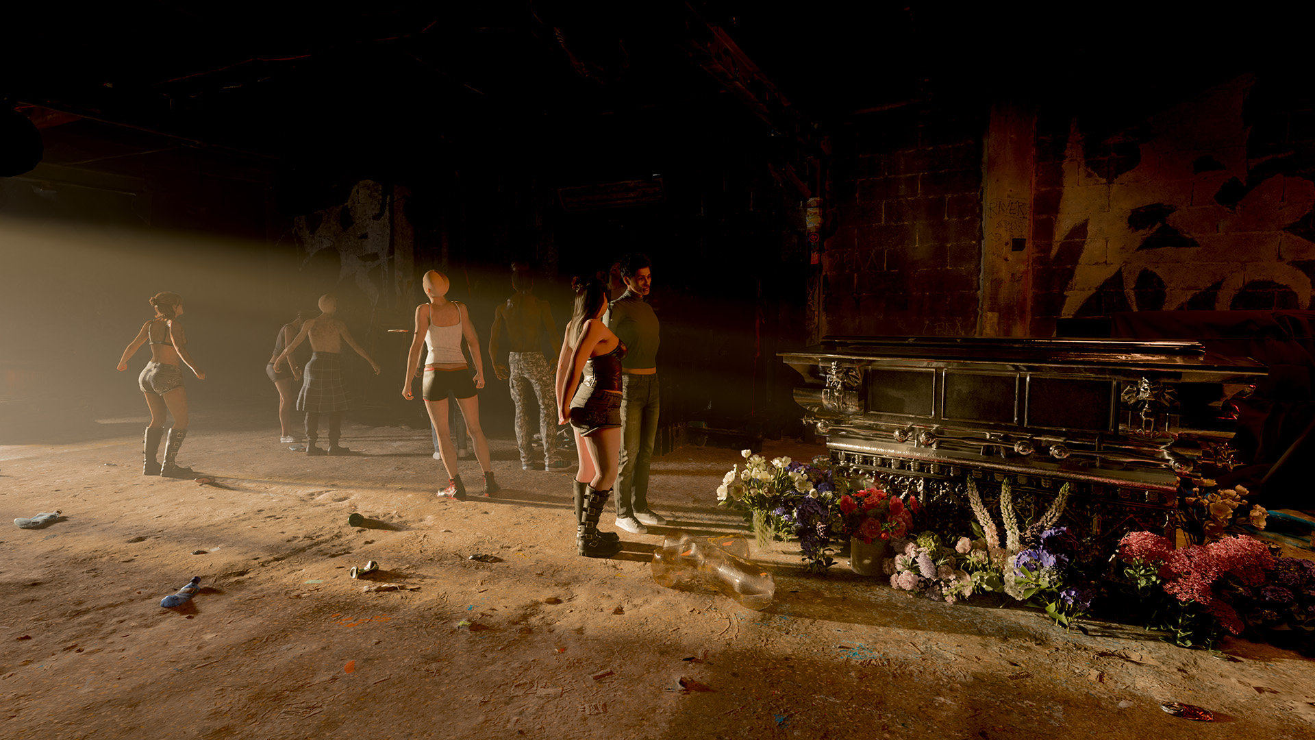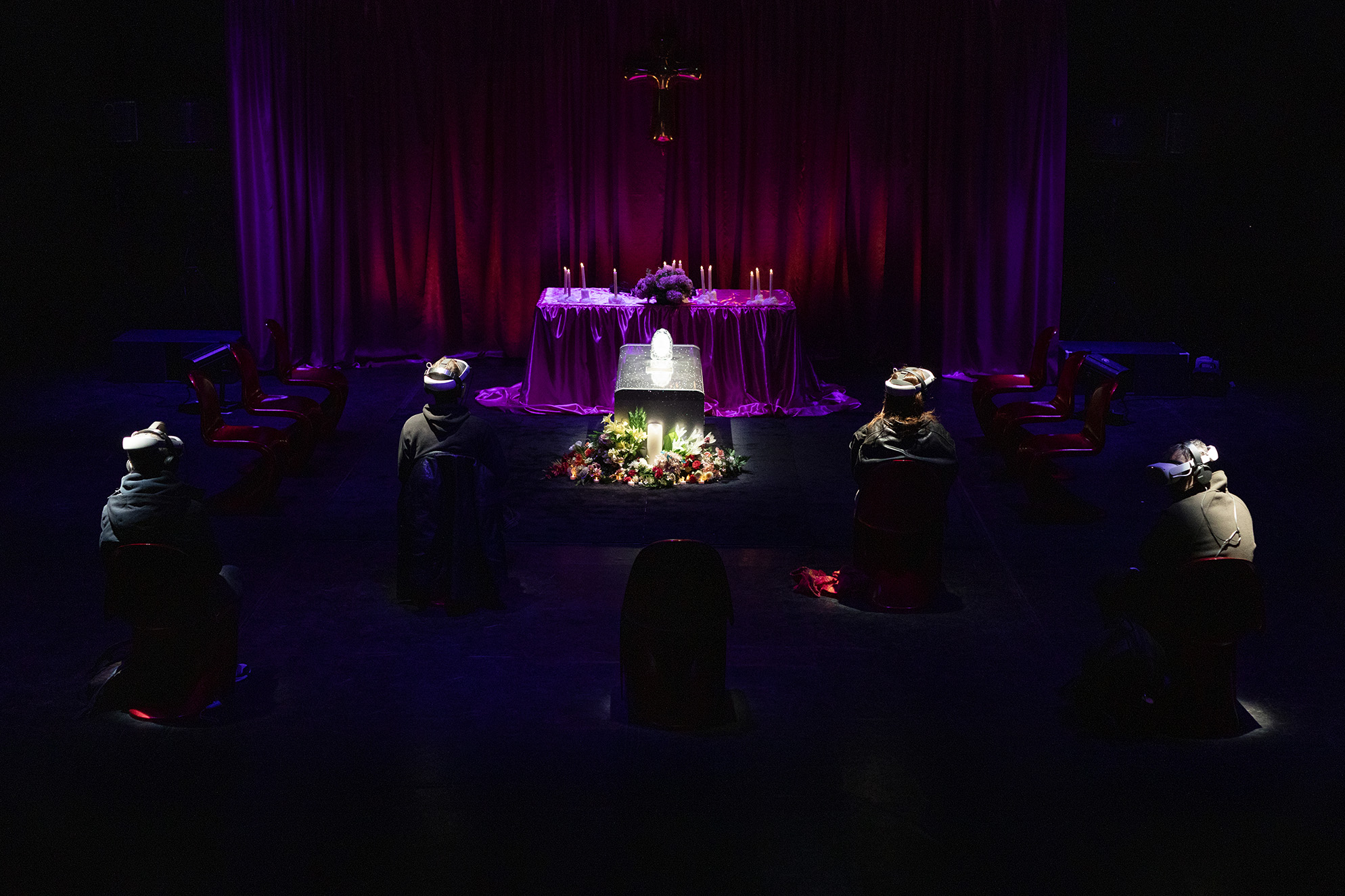 DISCO FUNERAL invites you on a sensory journey into an underground club where two friends navigate their grief. Laughter, tears and confidences blend on the dancefloor, transformed into a space of memory. Between melancholy and ecstasy, you’ll be immersed in a contemporary ritual to face death and relearn how to live.